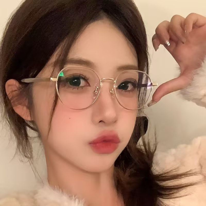 Graded Eyeglasses with Grade -50 100 150 200 250 300 350 400Myopia glasses women's high-value student models anti-blue light display face small flat mirror plain glasses 066