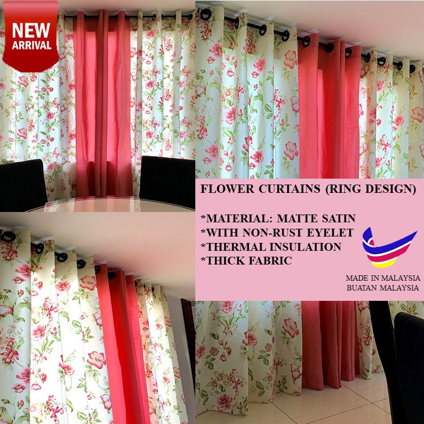 PCDECOR Curtains Door Curtain 2 Panels 3 Panels Sliding Door Hook Ring Curtain Langsir Siap Jahit