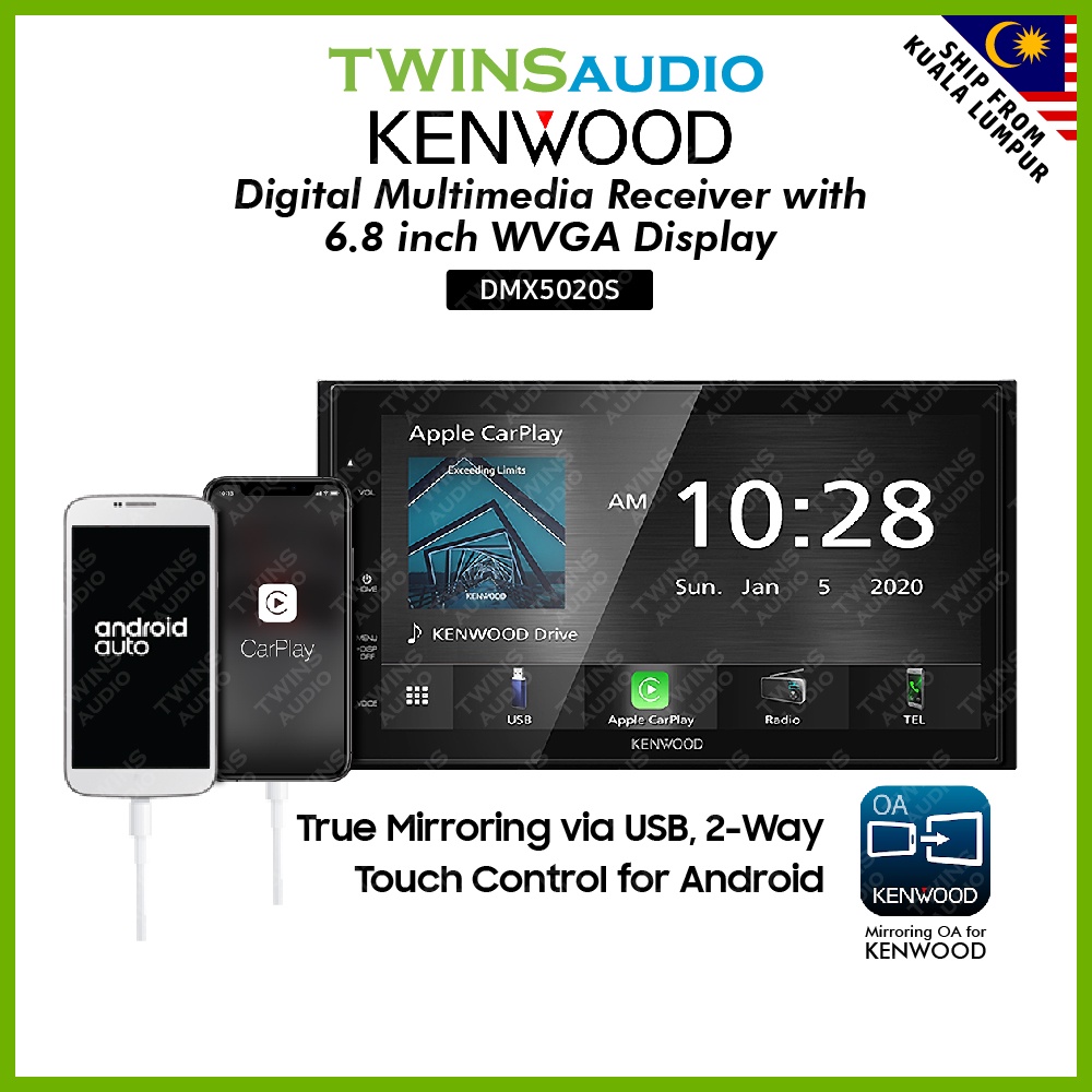Kenwood DMX5020S - Digital Multimedia Receiver with 6.8 inch WVGA Display Apple CarPlay Android Auto Receiver