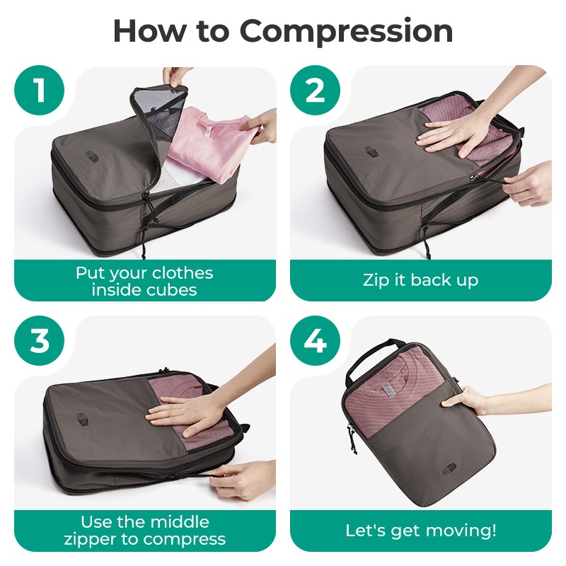 BAGSMART Travel Packing Cubes Compression 6 Pcs Luggage Organizer Bags Pouch Suitcases Expansion Clothes Storage Bag