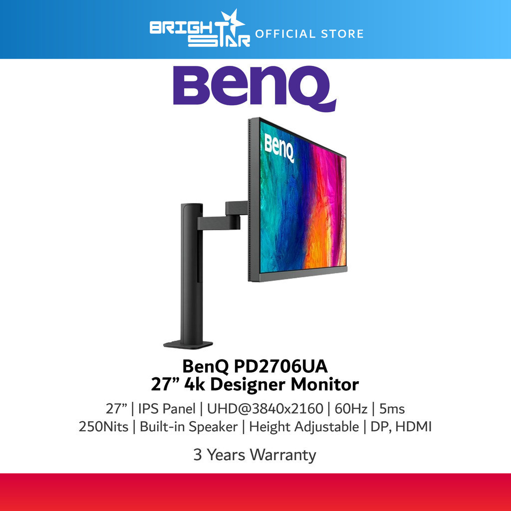 BENQ PD2706UA Designer Monitor - 27"/IPS/4K UHD/60Hz/5ms/Built-in Sepaker/Height Adjustment/DP,HDMI,Type-C/3Y