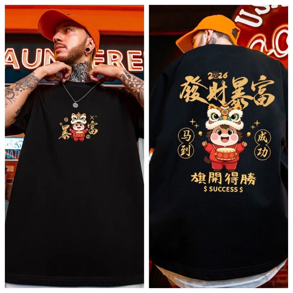 【Premium 220GSM 100% Cotton T-Shirt】GXG retro cartoon pony print round neck short sleeved men 2026 New Year street #5