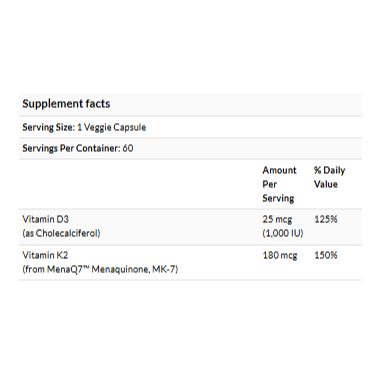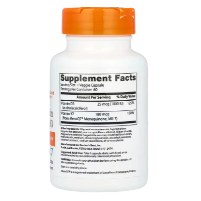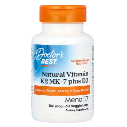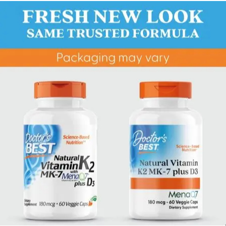 Doctor's Best, Vitamin K2 MK-7 MK7 +D3 with MenaQ7 plus Vitamin D3, 180 mcg, 60 Vcaps | 100% Vegetarian