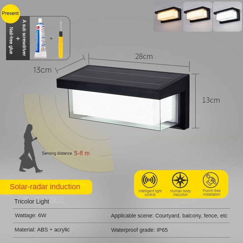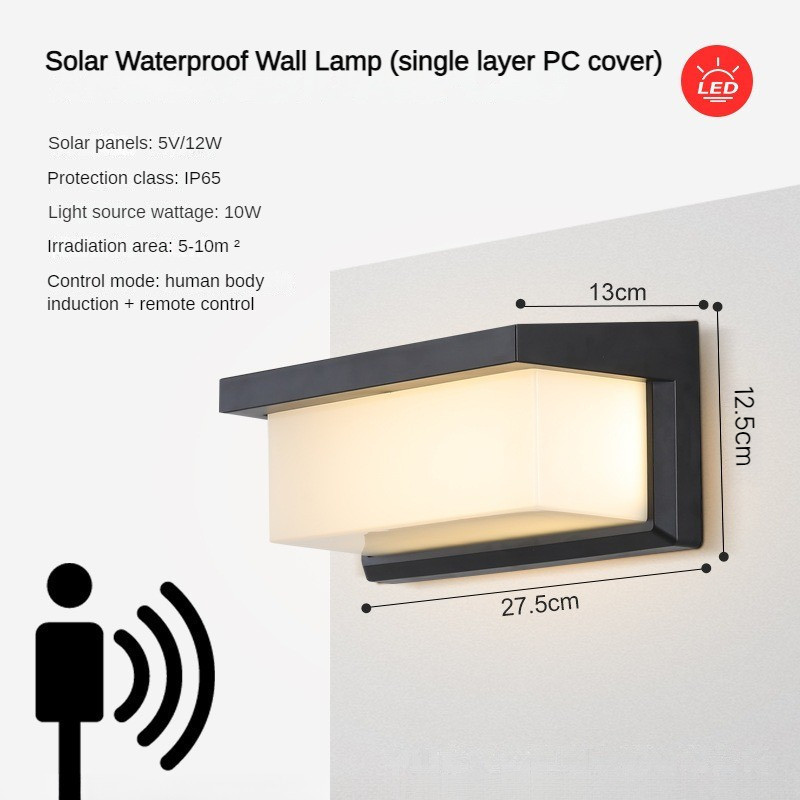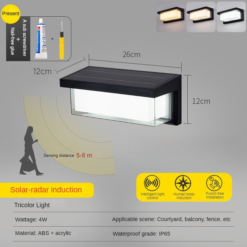 Solar Street Light Garden Light Outdoor Wall Light Waterproof Garden Light Villa Wiring-Free Square Human Body Induction Aisle Balcony Wall Light