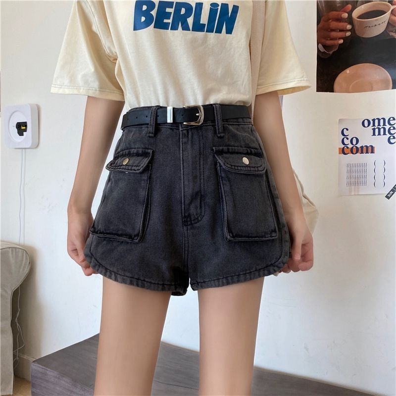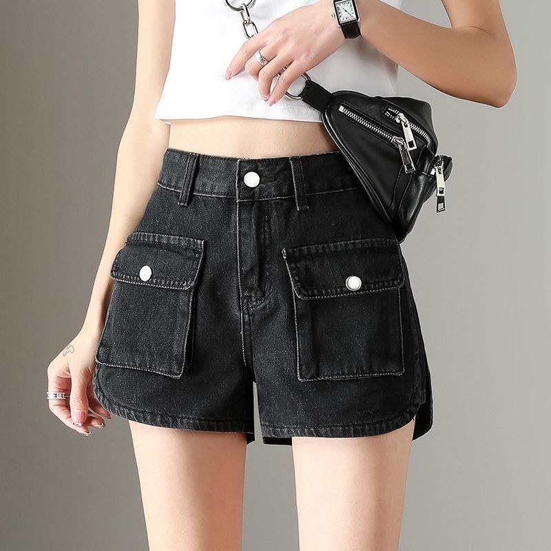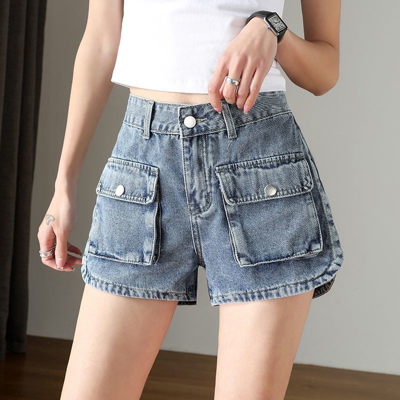 Workwear denim shorts for women 2022 hot girls high waist slim outer wear wide leg pocket hot pants工装牛仔短裤女2022辣妹高腰显瘦外穿阔腿口袋热裤潮♣5.16
