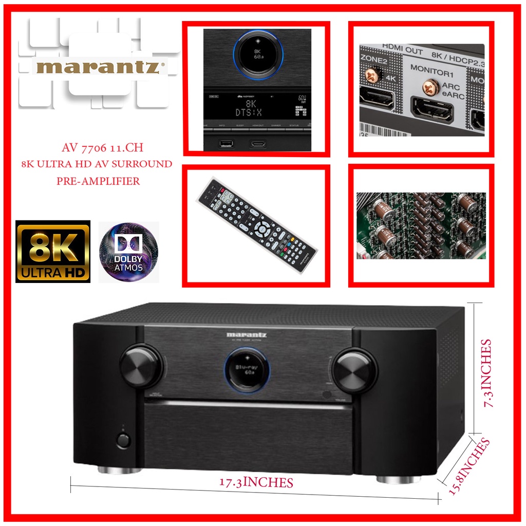 Marantz AV 7706 11.2CH 8K Ultra Hd Av Surround Pre Amplifier