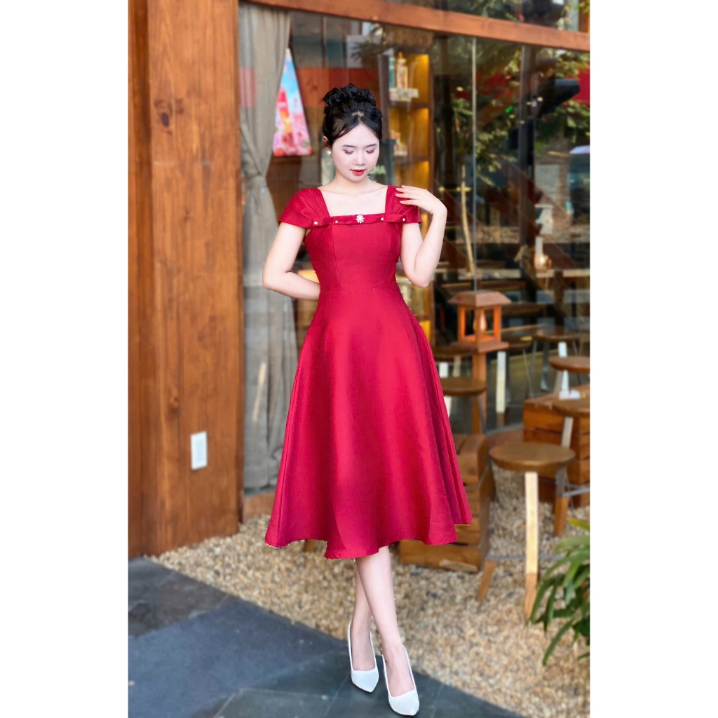 Youthful Rhinestone Bow Sleeve Swing Dress, Big Size Middle-Aged Flared Dress for Party Outings, Flared Code Design X076
