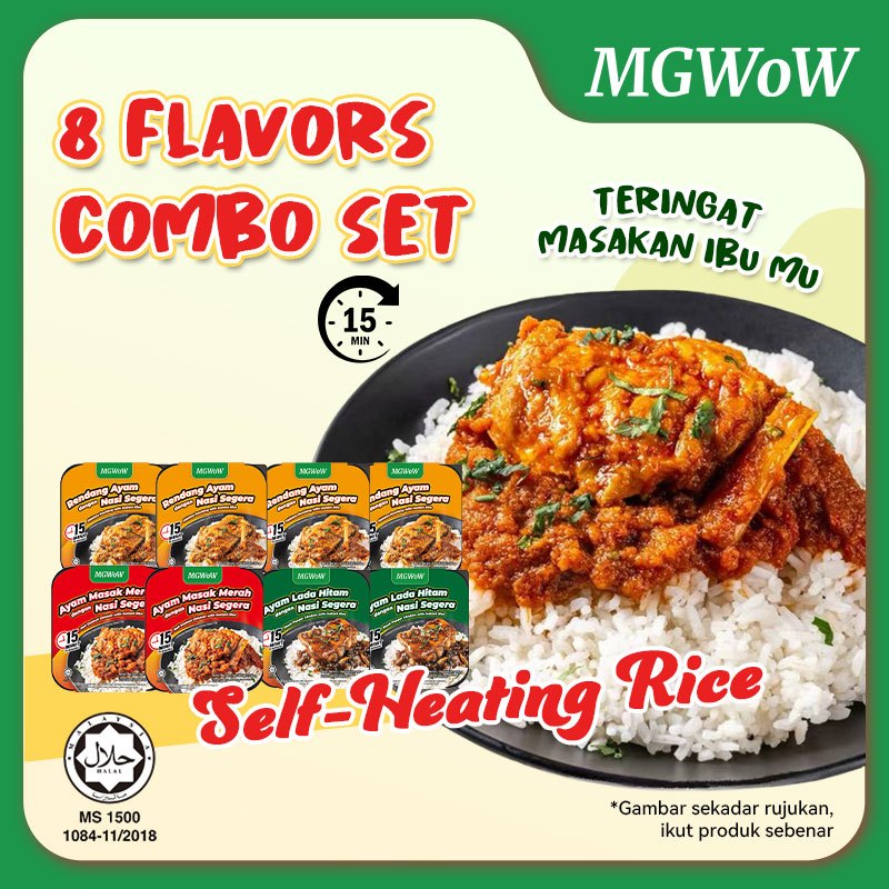 MGWoW HALAL Makanan Travel Mudah Nasi Self Heating Halal Perisa Rendang Ayam Masak Merah 190g