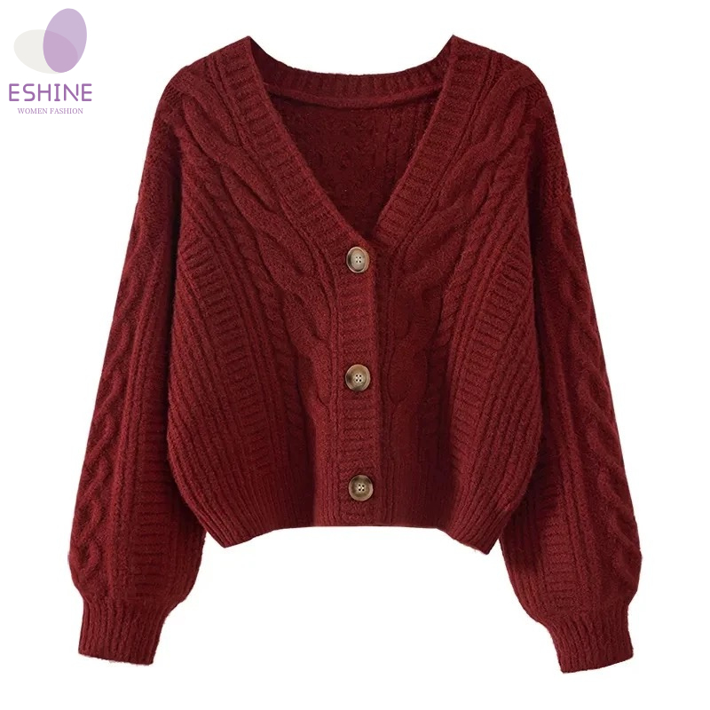 Eshine Retro Knitted Cardigan Woman Baju Knitwear Plus Size Baggy Crop KnitWear Cardigan