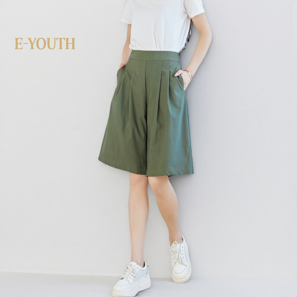 Eyouth 20161 Pleated A-Line Culottes Knee length ladies short pant