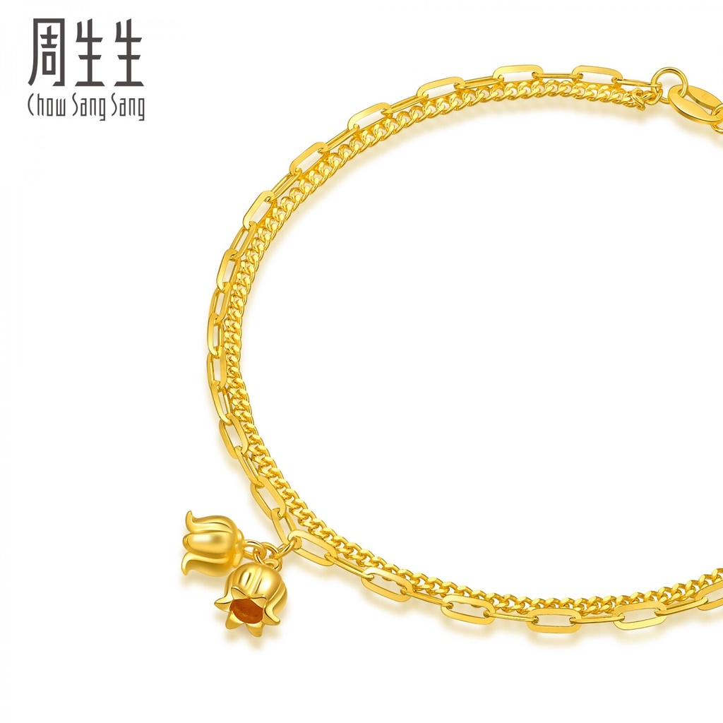 Chow Sang Sang 周生生 999 24K Pure Gold Essence Double Double Chain Bracelet with Lucky Charms for Women Size 18cm 95771B Price-by-Weight 4.1g Pure Gold