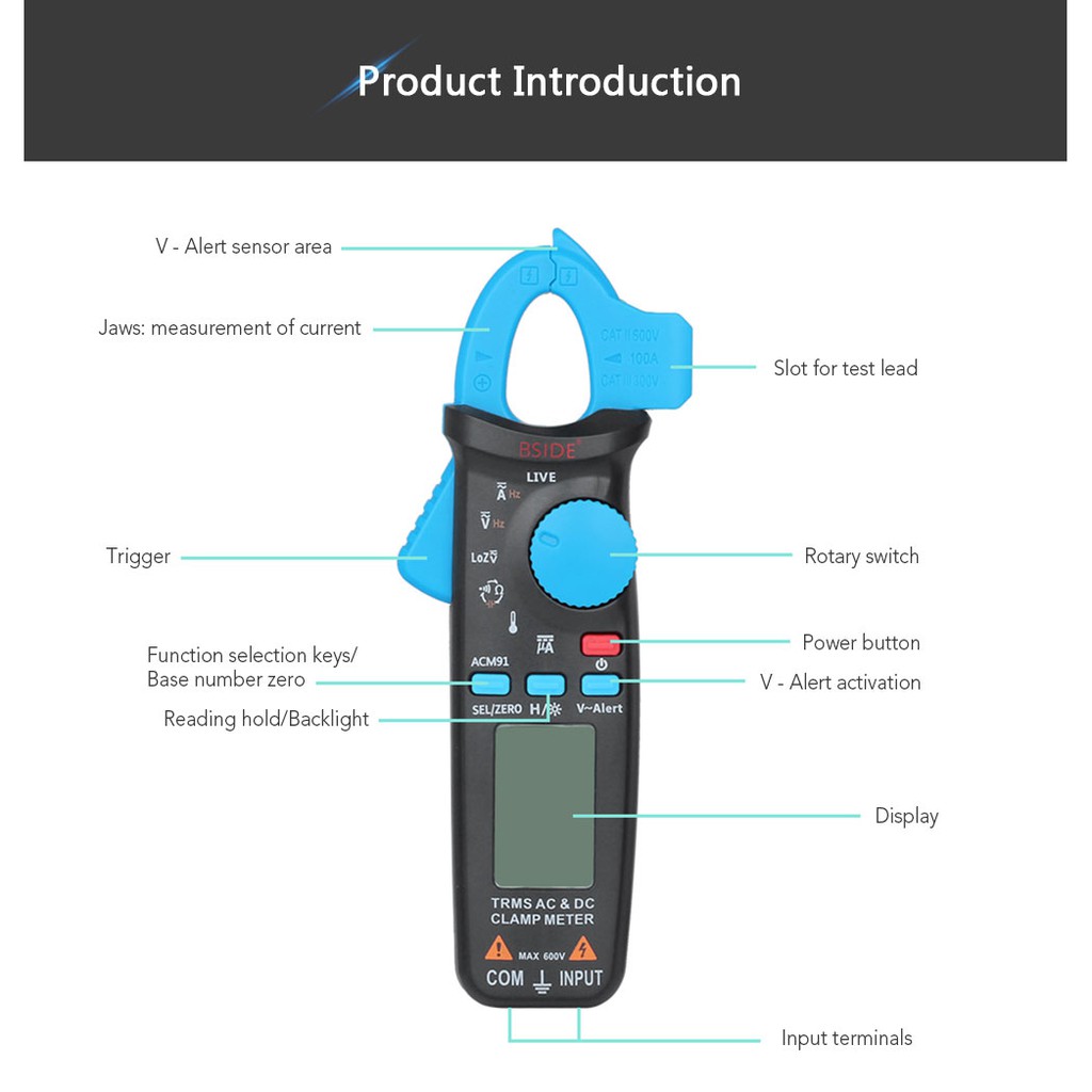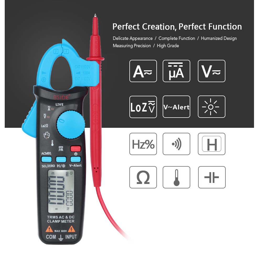 BSIDE ACM91 Digital Clamp Meter Current AC DC Voltmeter