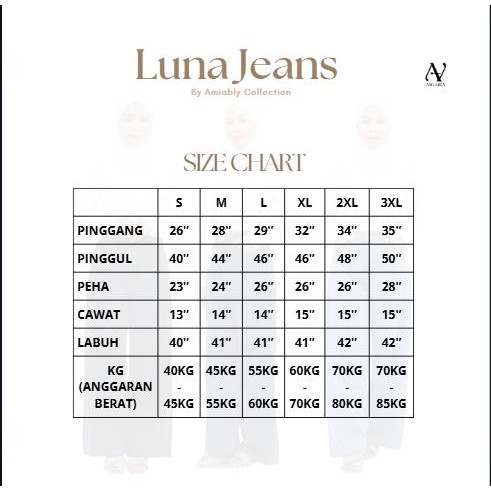 AMIABLY LUNA JEANS Jeans Women Denim Wanita Seluar Breathable 4 Pockets Button Zip Casual Wear Bootcut