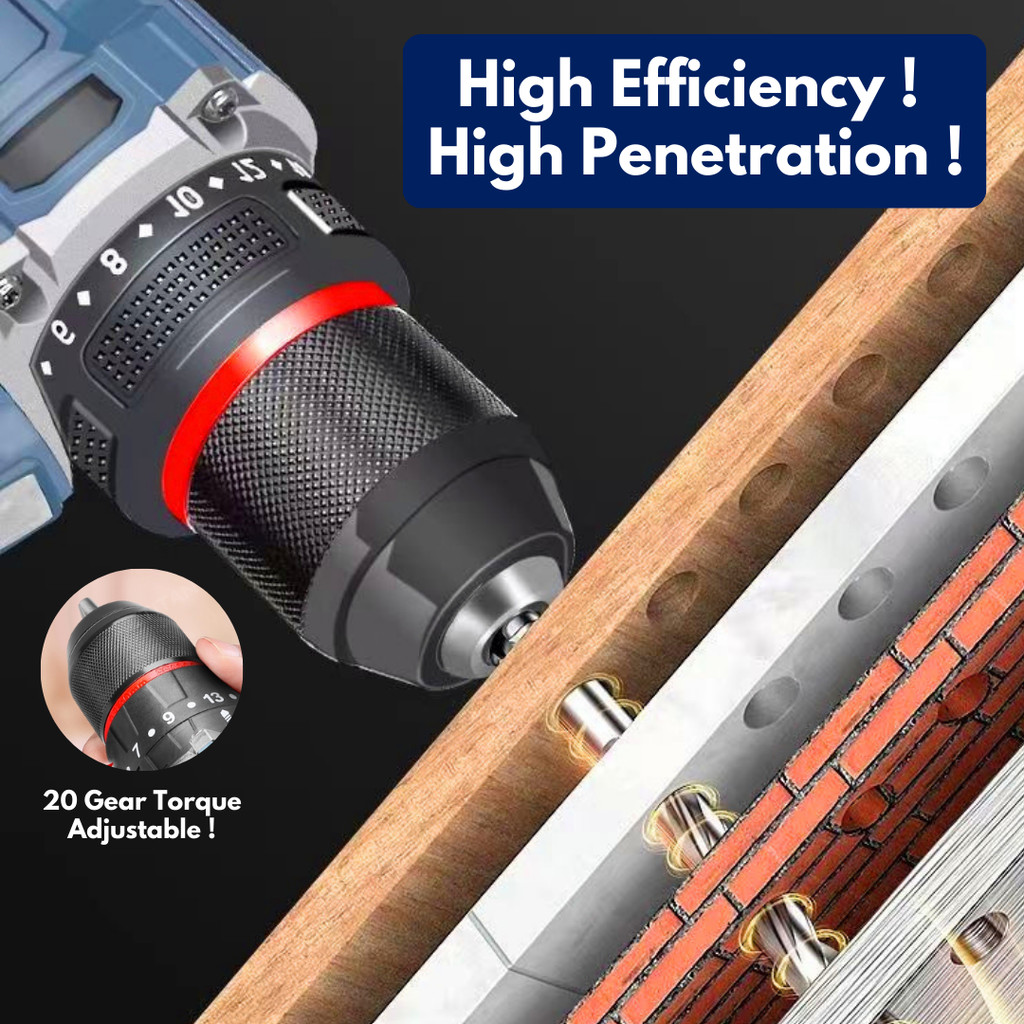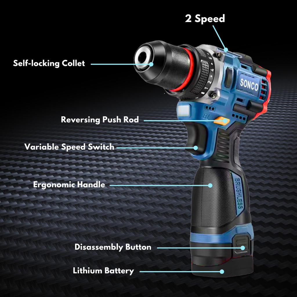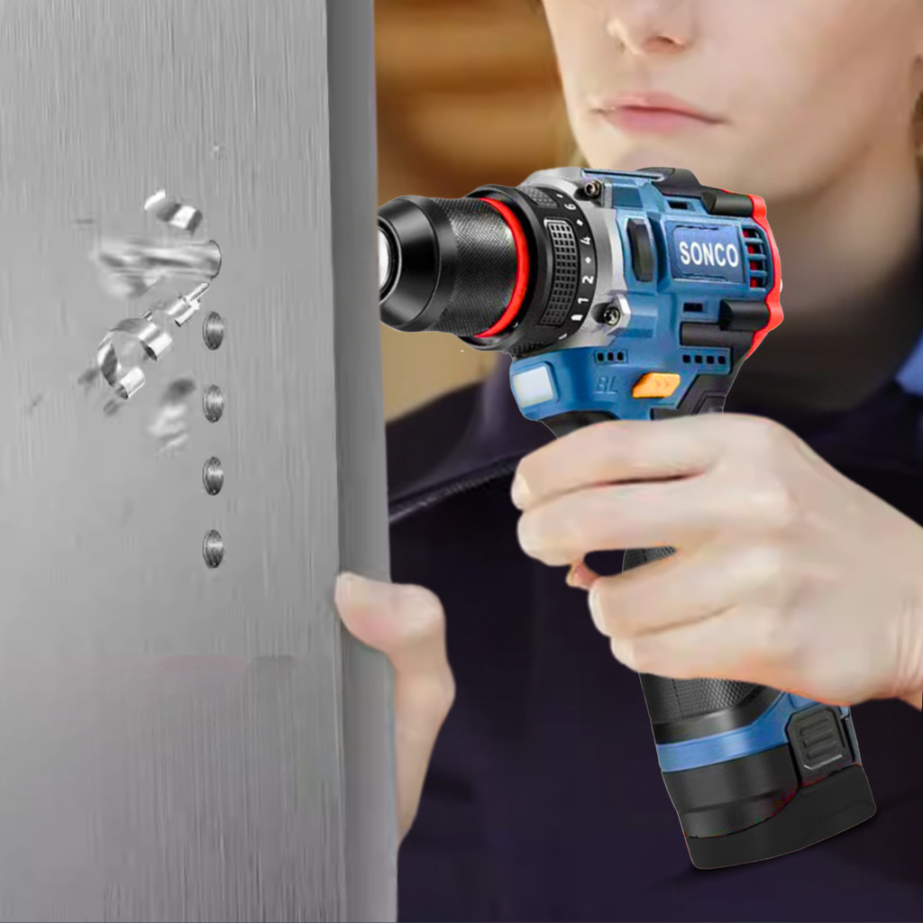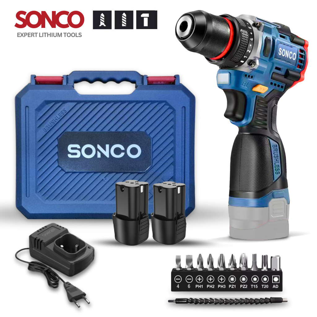 SONCO 18V Brushless Hammer Cordless Impact Drill Cordless Hammer Drill 23+1 Torque Drill Tool Set