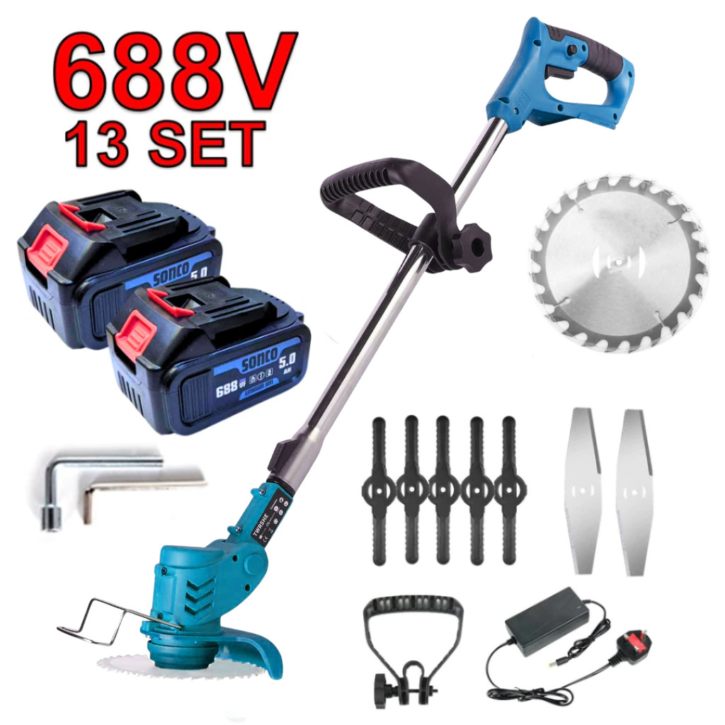 SONCO 688V/288V/12V Battery Cordless Grass Trimmer Lawn Mower Electric Mesin Rumput Moden Cutter Bateri Powertrim 割草机