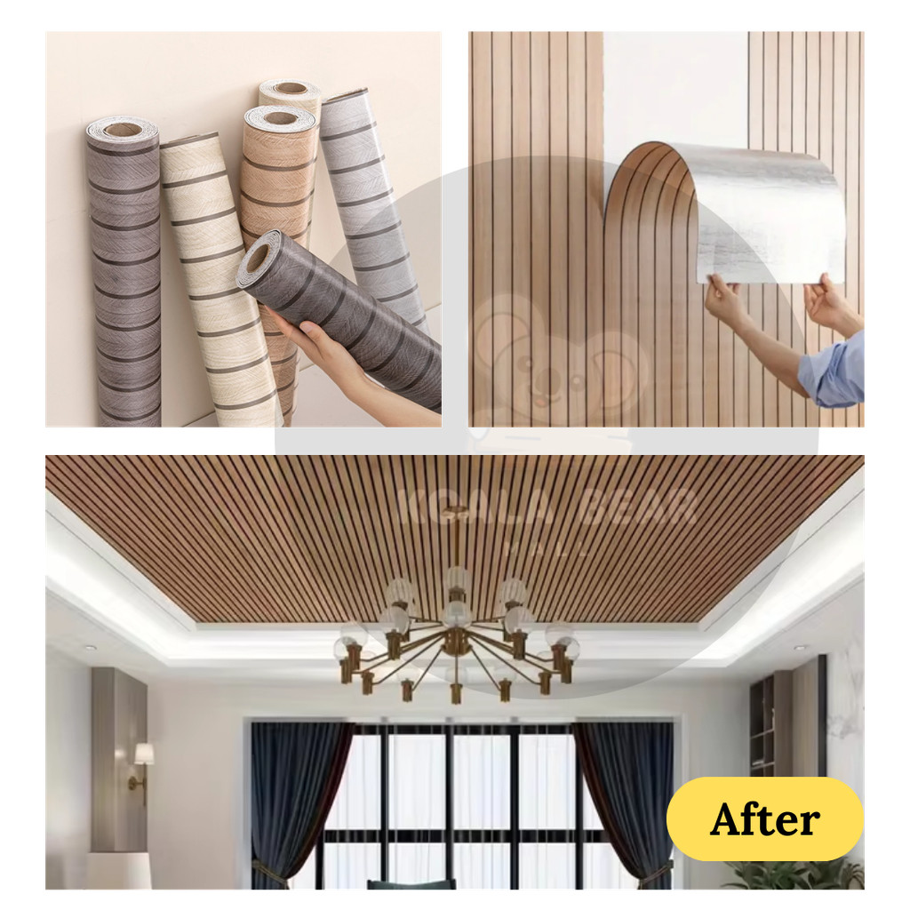 Modern 3D Wood Foam Sticker Dinding Wall Ceiling Bedroom Decor Pelekat Wallpaper Dinding Ruang Tamu