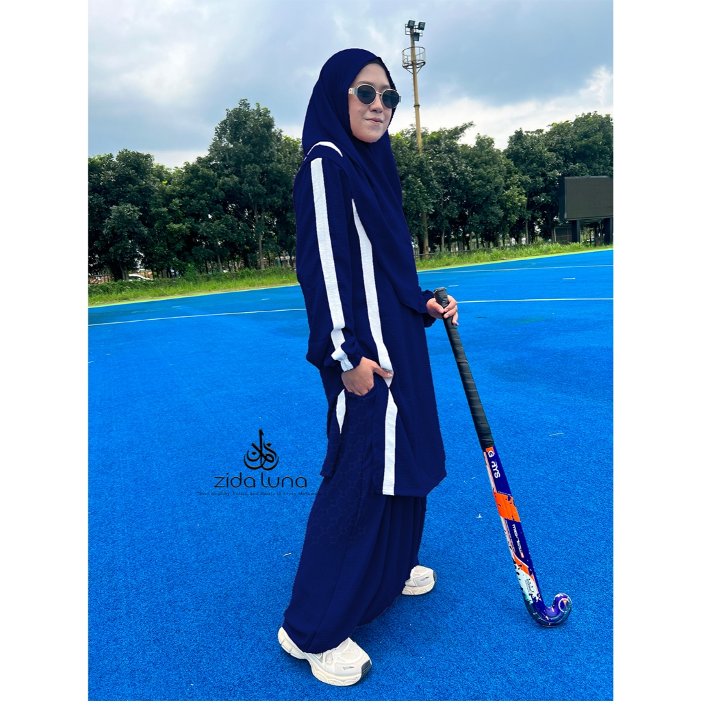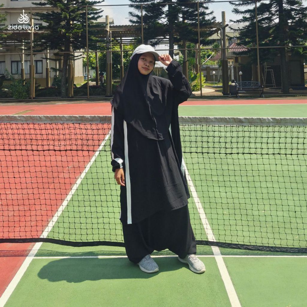 ZIDALUNA - HALIZA SPORTY ACTIVE SET MUSLIMAH SIRWAL 3in1 MUSLIM TUNIC TOP SYAR'I CRINGKEL MATERIAL Sports Hijab