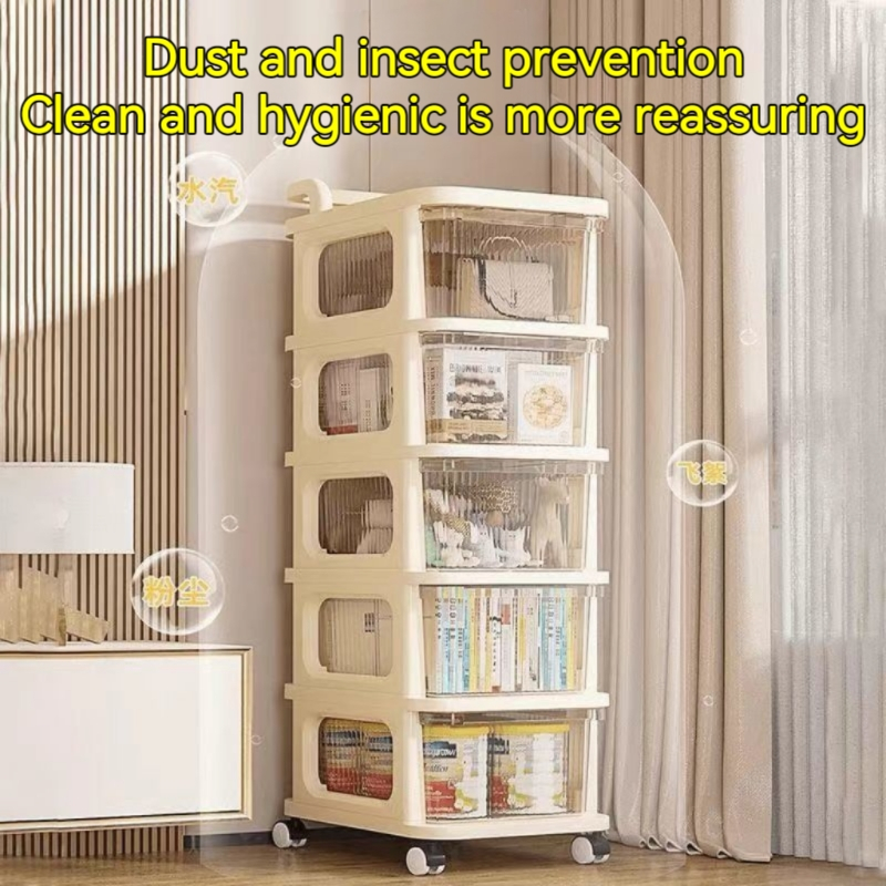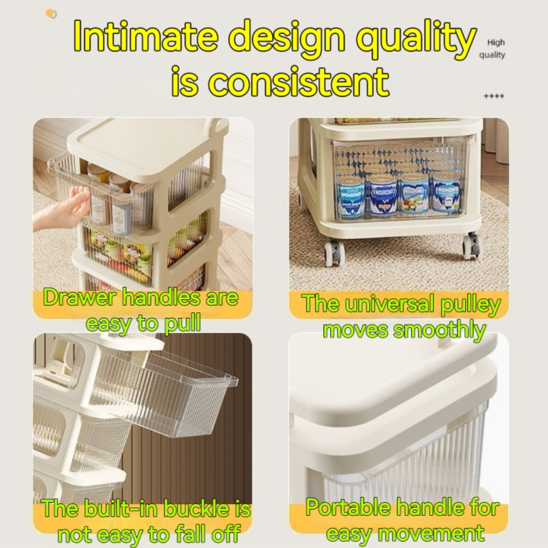 Multi-layer Assembly Movable Storage Shelf Drawer Multipurpose Storage Trolley Large Capacity transparent Drawer Cab With Universal Pulley Kids snack toy storage box