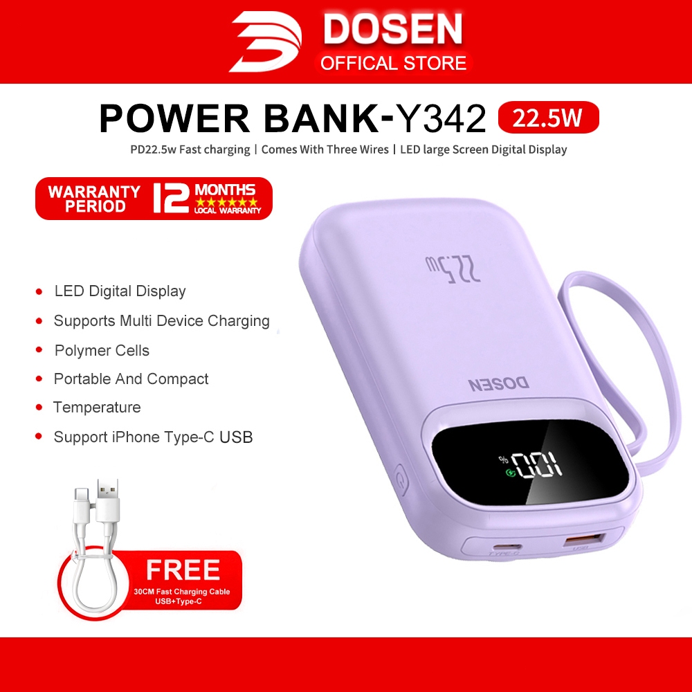 【3C Certified】DOSEN Original Powerbank fast charging PD22.5W Portable 10000mAh 20000mAh 25000mAh Comes with three wires