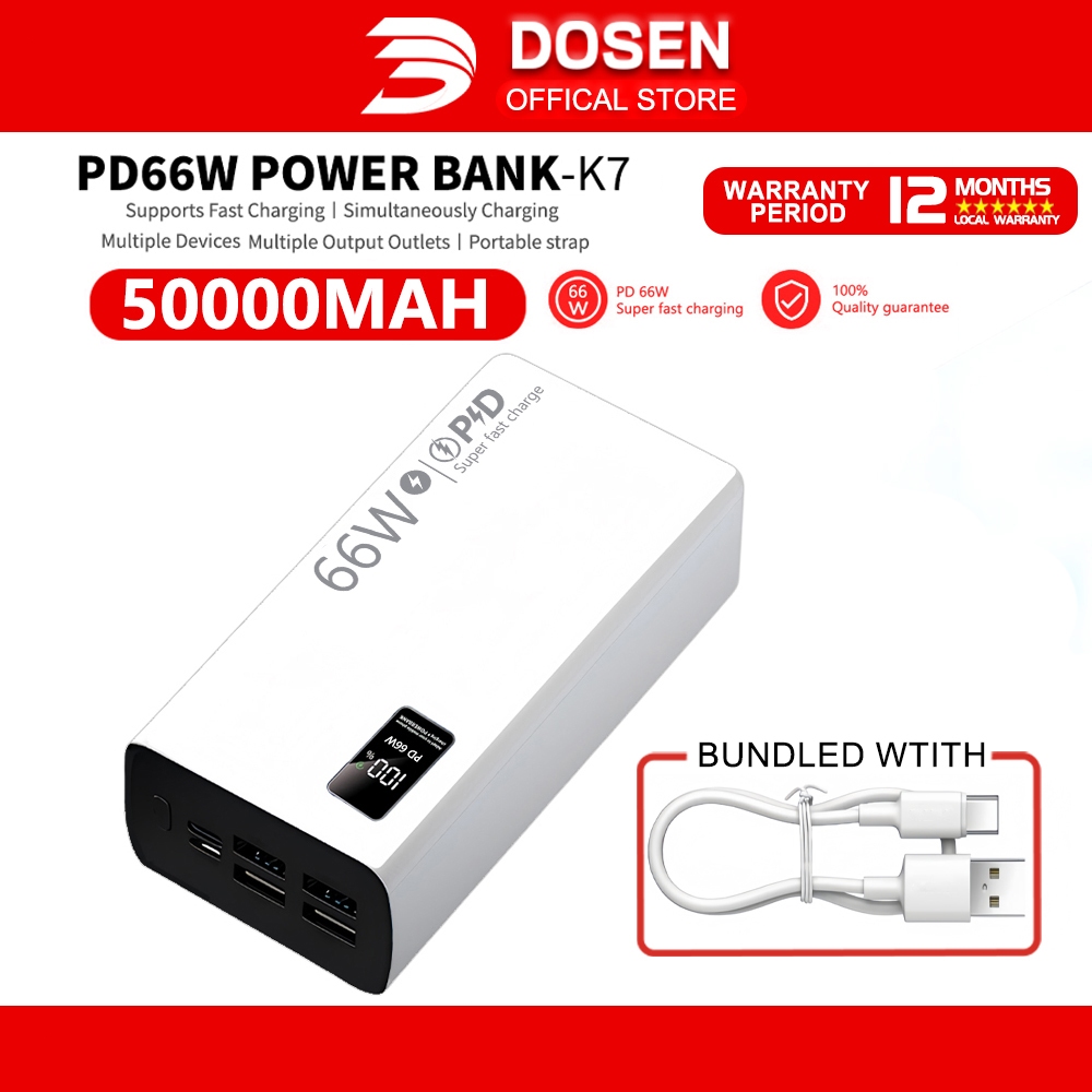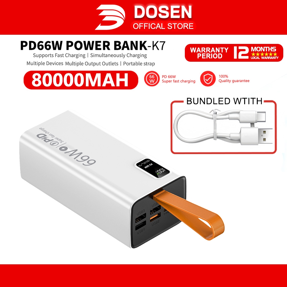 DOSEN Power Bank K7 Fast Charging Four USB Portable Digital Display Black White(PD66W/10000mAh-80000mAh)