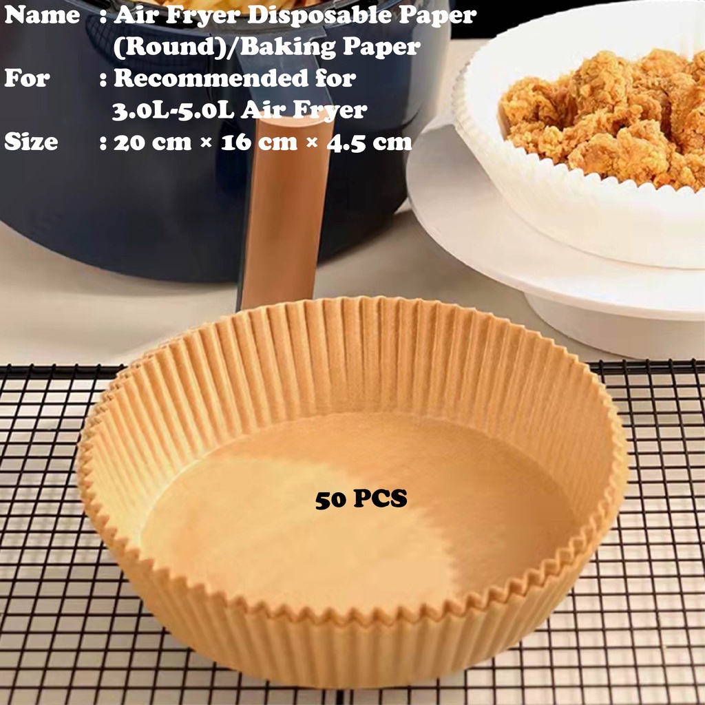 (Ready Stock)25 pcs/50pcs Air Fryer Disposable Paper(Round)/Baking Paper