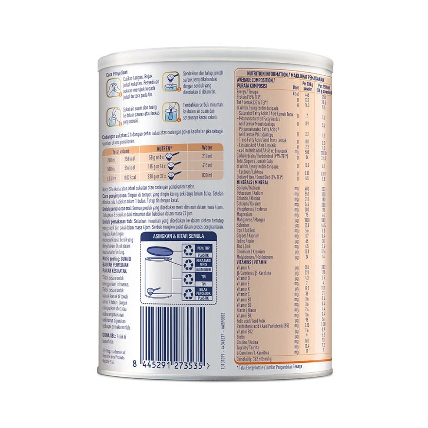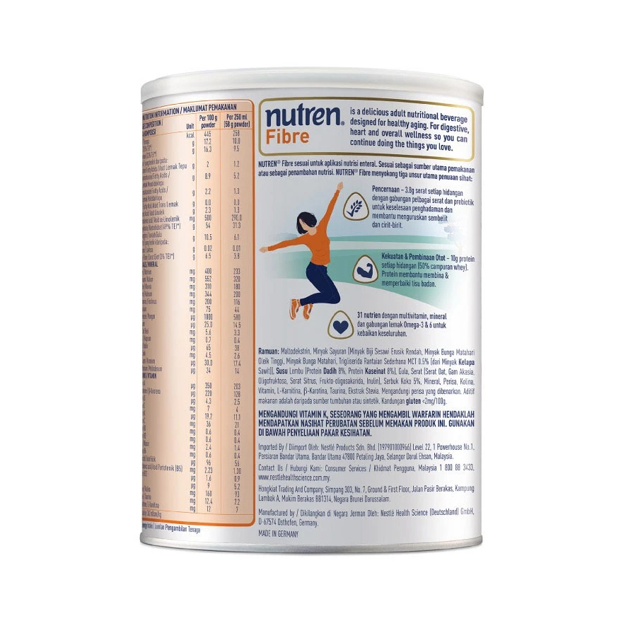 NESTLE Nutren Fibre Complete Nutrition 400g Gut Health Chocolate Flavour Powder (Bundle Of 2)