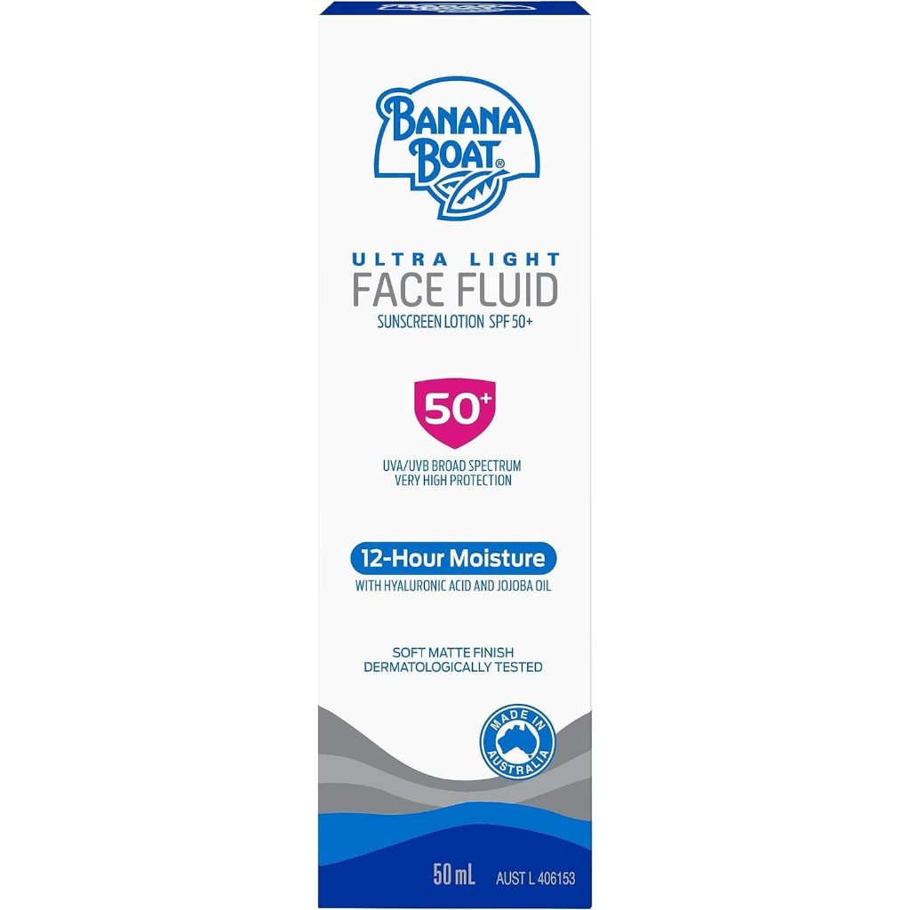 BANANA BOAT SPF50+ Ultra Light Face Sunscreen Fluid, 50ml, 12H moisture