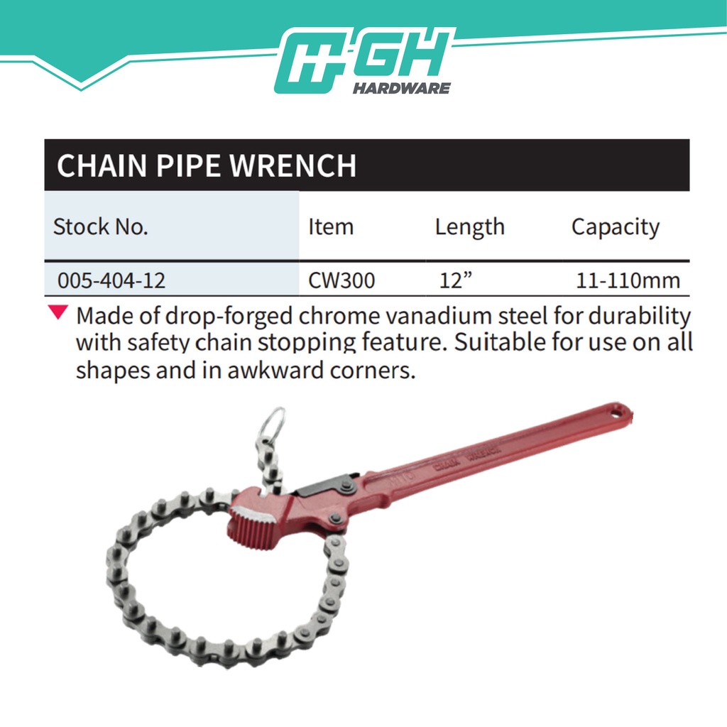 [ GH HARDWARE ] M10 12" Chain Pipe Wrench CW-300