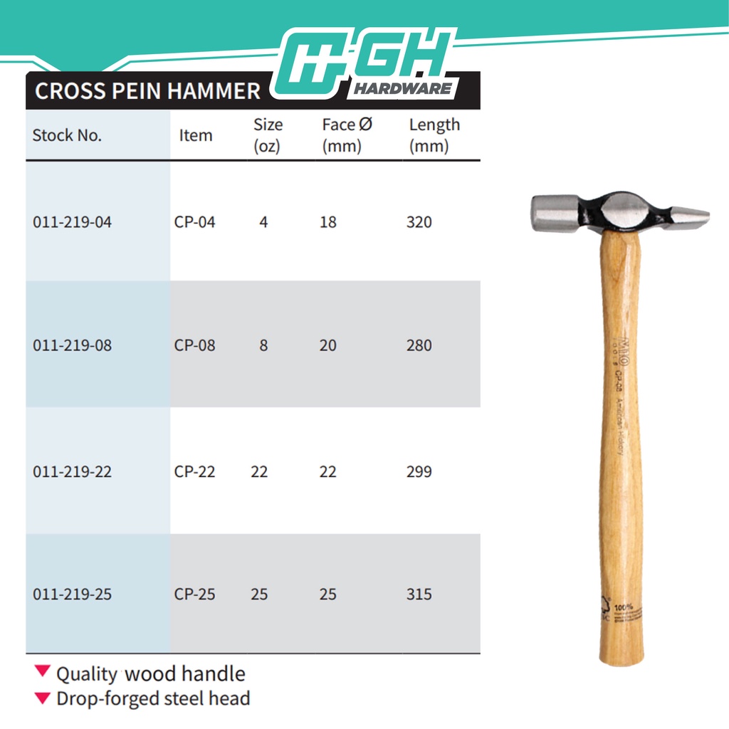 [ GH HARDWARE ] M10 Cross Pein Hammer - 4oz / 8oz / 22oz / 25oz