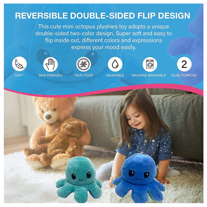 Flip Octopus Doll Viral Reversible Octopus Plush Reversible Bipolar Plushie Stuffed|Mainan Batung Sotong|解压章鱼娃娃公仔 DZO
