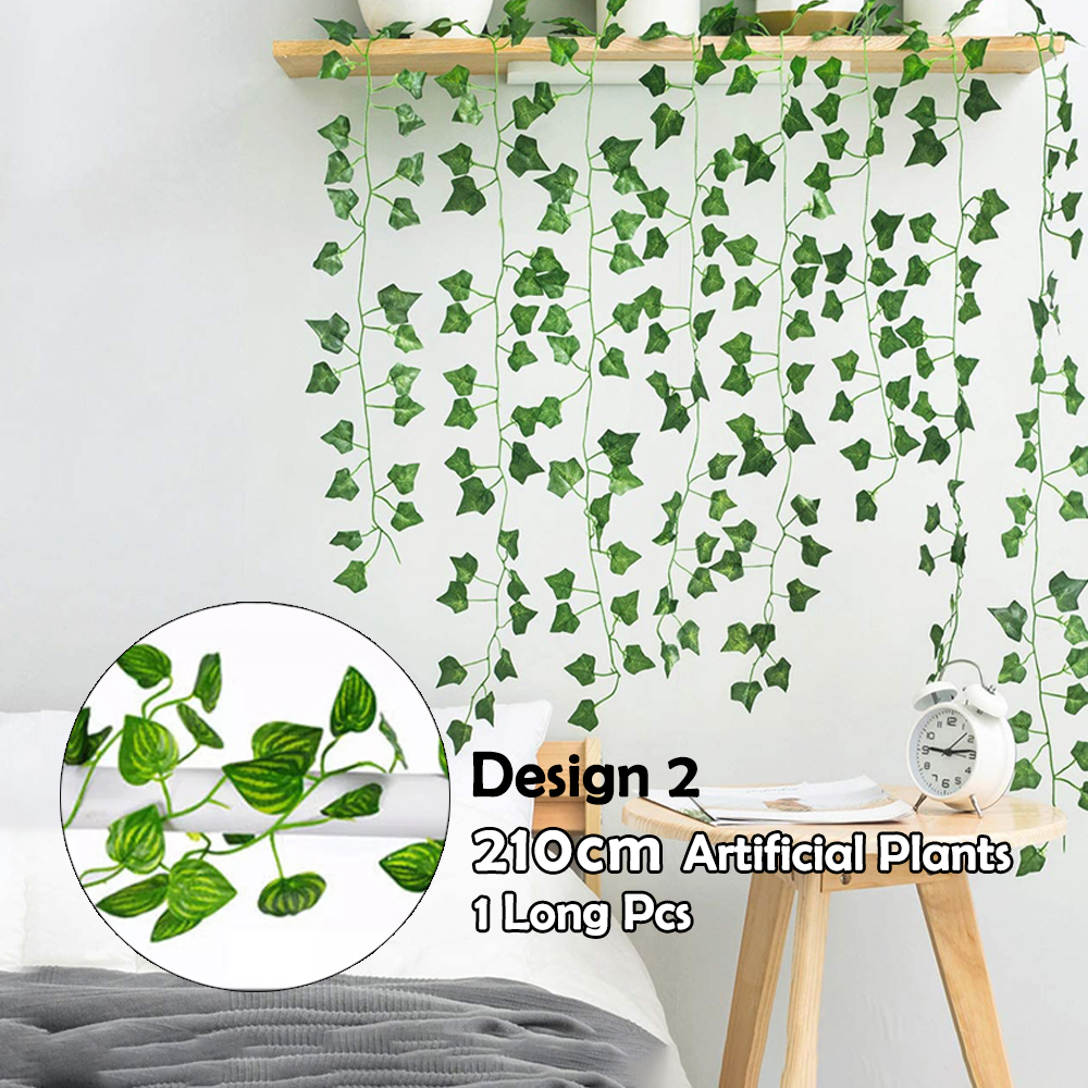 AP006 210cm Artificial Plants (78-82 Pcs Leaf) Simulation Wall Climbing Vines Green Leaf Ivy Leaf 1 Long Pcs DIY
