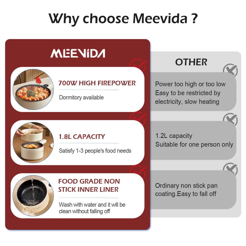 MEEVIDA 1.8L Upgrade Multifunction Electric Smart Cooking Pot With Steamer Rice Cooker Non Stick Pan Hot Pot