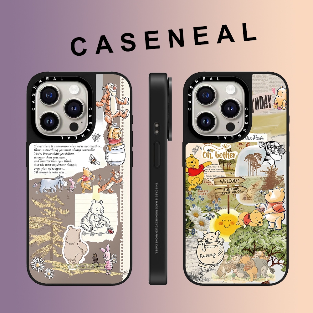 CASENEAL cartoon Graffiti cute Winnie the Pooh mirror face Phone Case For iPhone 17 Air 16 Pro Max 15 Plus 14 ProMax 13 12Pro 11 Shockproof Phone soft border hard protective case