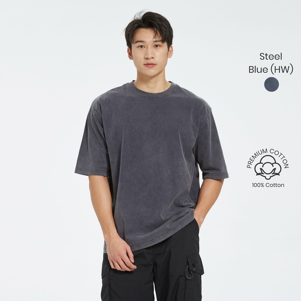 HFA Unisex Acid Washed 280GSM Cotton Oversized Crew Neck T-Shirt