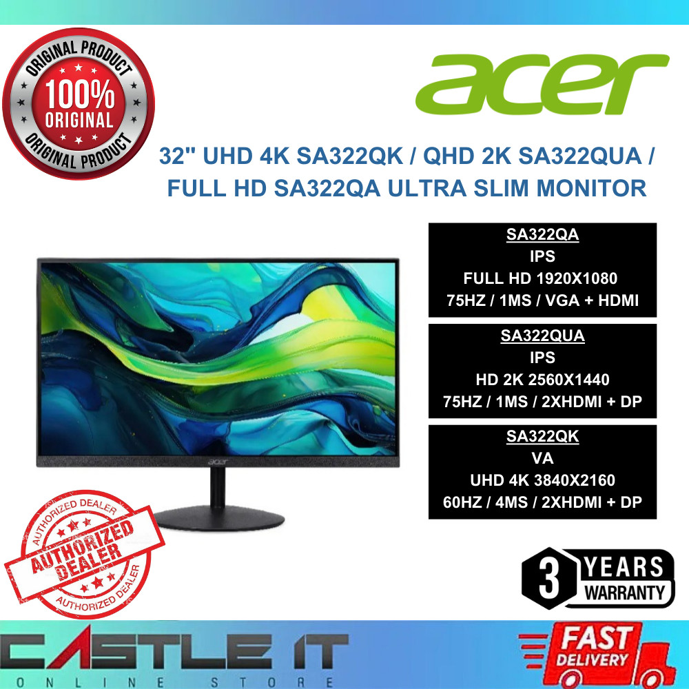 Acer 32" UHD 4K SA322QK / QHD 2K SA322QUA / FULL HD SA322QA Ultra Slim Monitor FreeSync