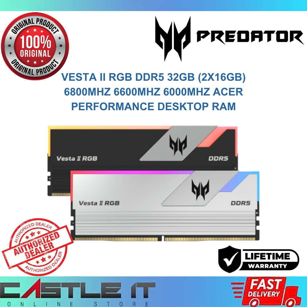 Predator VESTA II RGB DDR5 64GB / 32GB (2x16GB) 6800MHZ 6600MHZ 6000MHZ acer Performance Desktop RAM