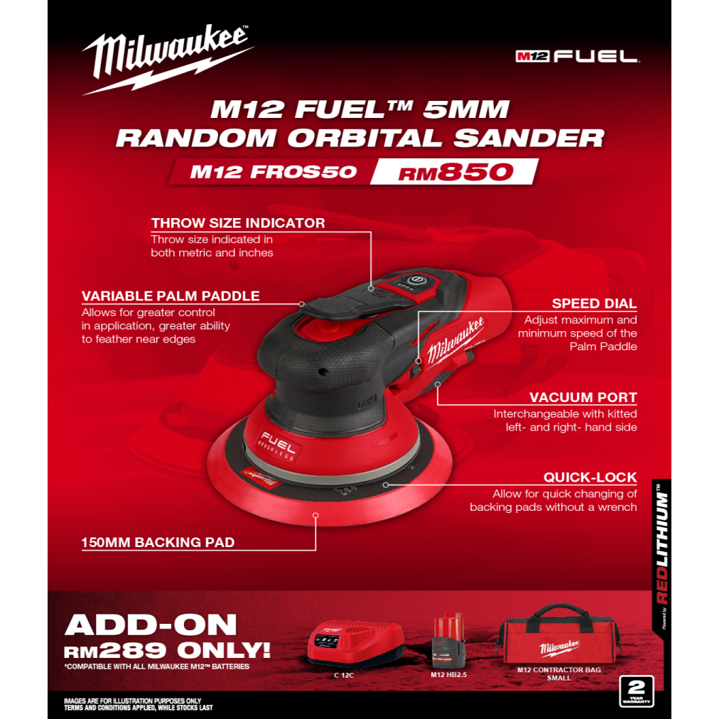 Milwaukee M12 FUEL 5mm Random Orbital Sander - M12 FROS50