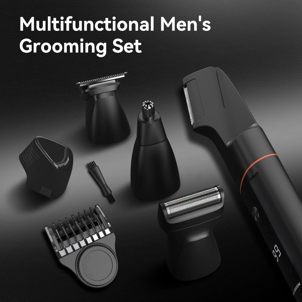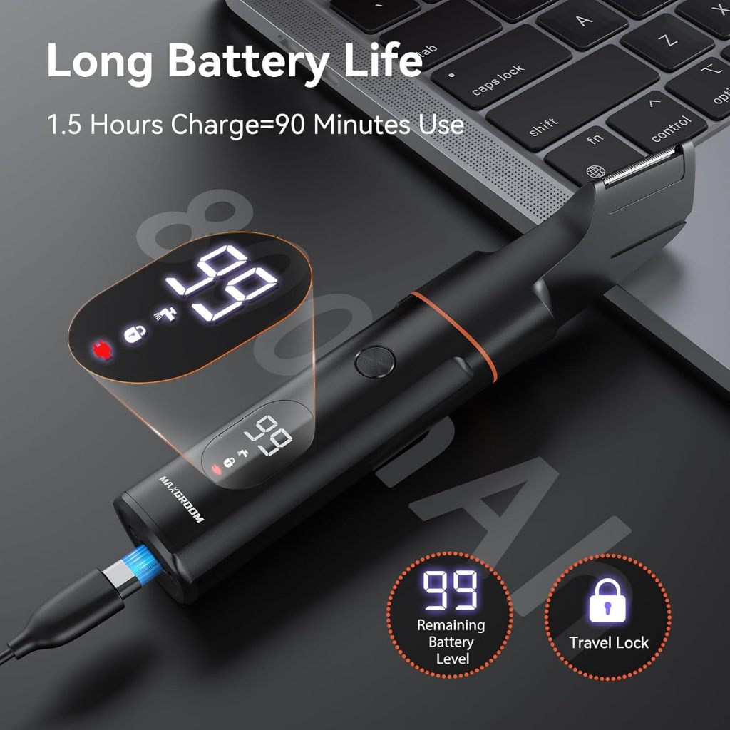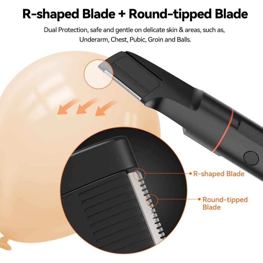 【Maxgroom】Manscape All-in-One Body Hair Trimmer untuk Lelaki, Keluli Pubik Kalis Air & Ball Trimmer Lelaki dengan Panduan Siar yang boleh laras & 4 Kepala Trimmer yang boleh ditukar (Hitam)