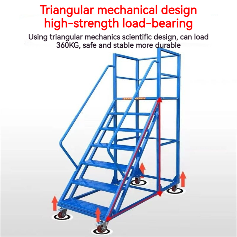 Warehouse Supermarket Climbing Ladder Mobile Steps With Wheels Thickened Guardrail Tally Removable Shelves Tool Ladder