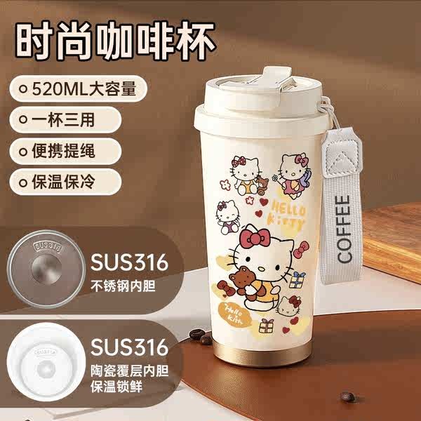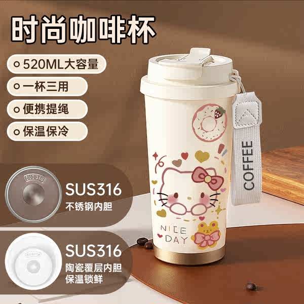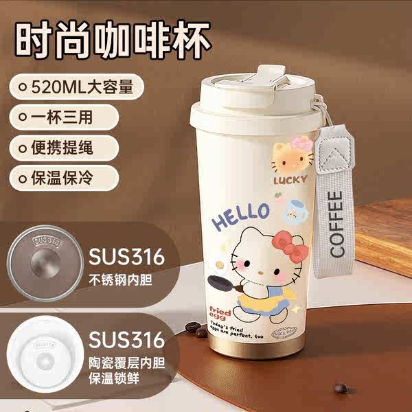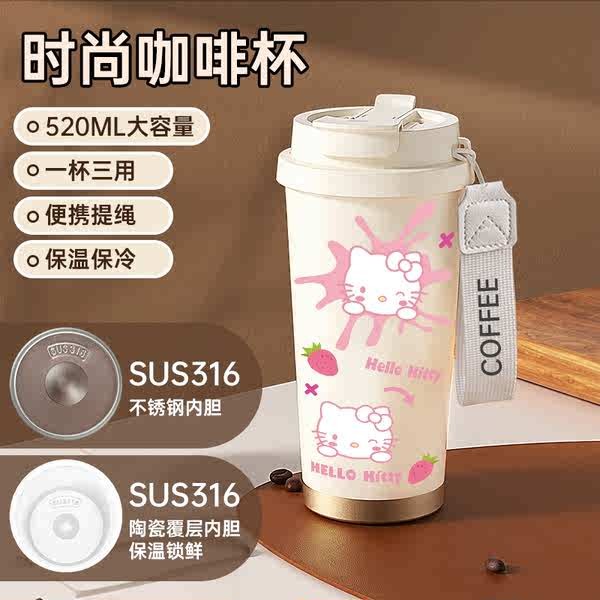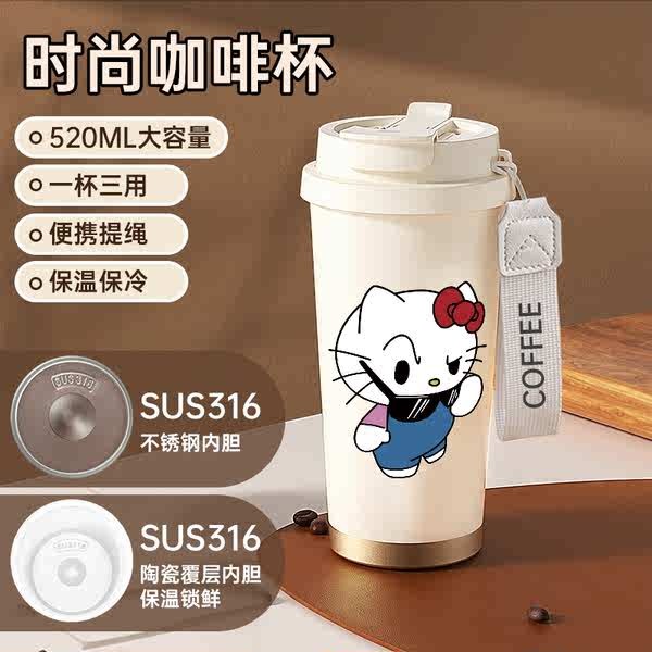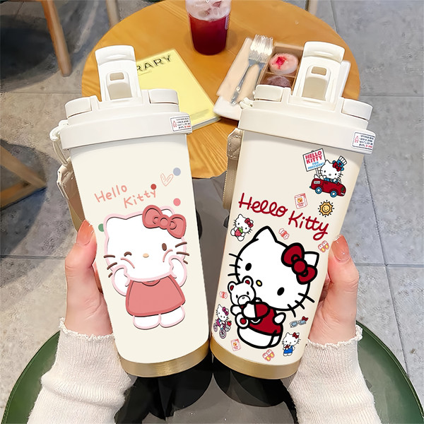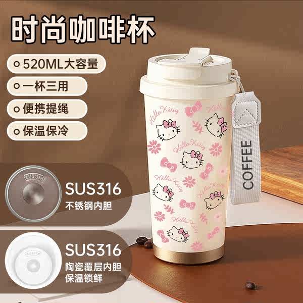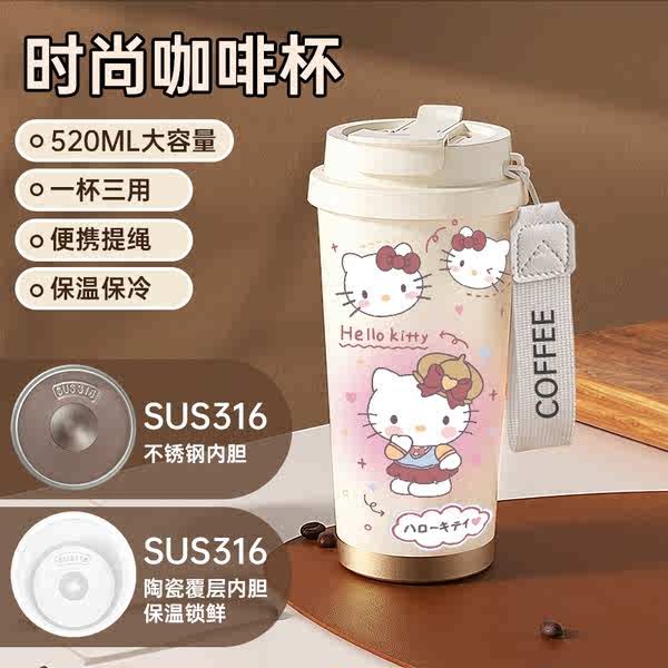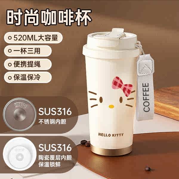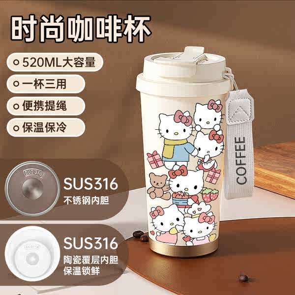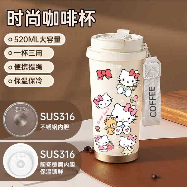 ceramic mug hydrojug tumbler tumbler tahan sejuk budak Cute Hello Kitty Thermos Cup Female High-Value Portable 2025 New Style Coffee Cup 316 Large Capacity Straw Water Cup