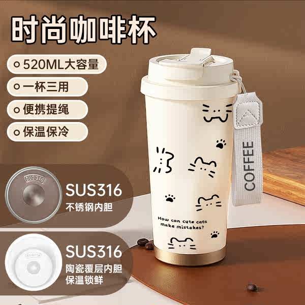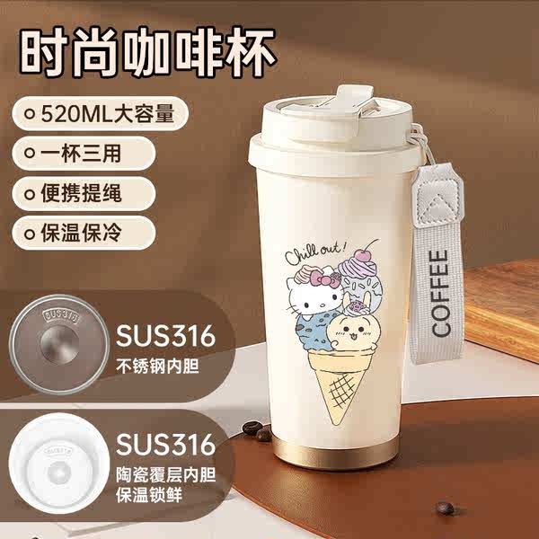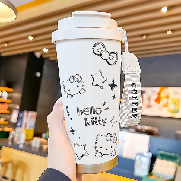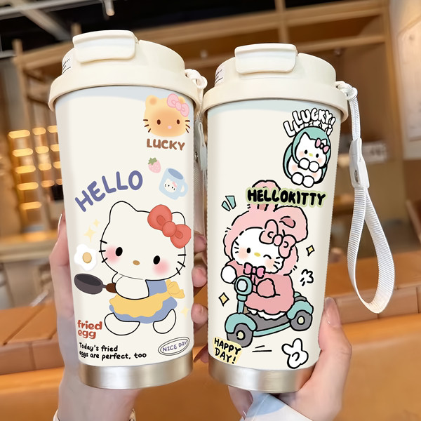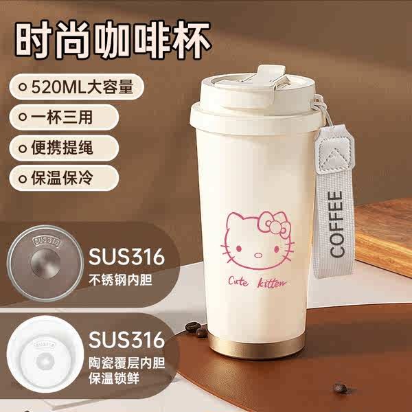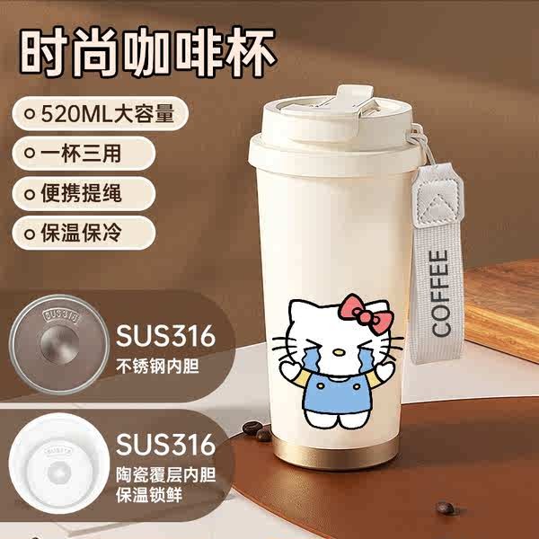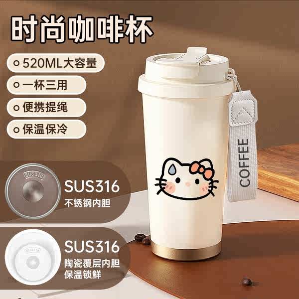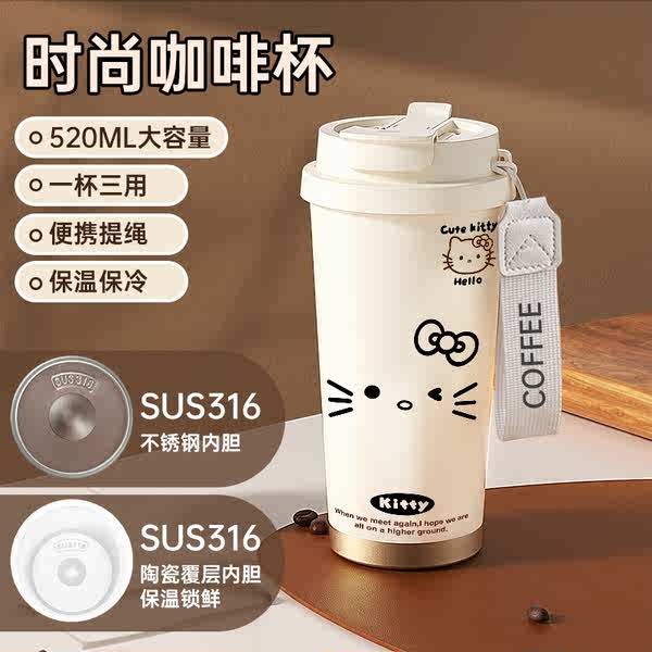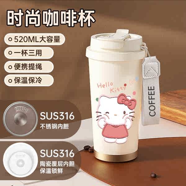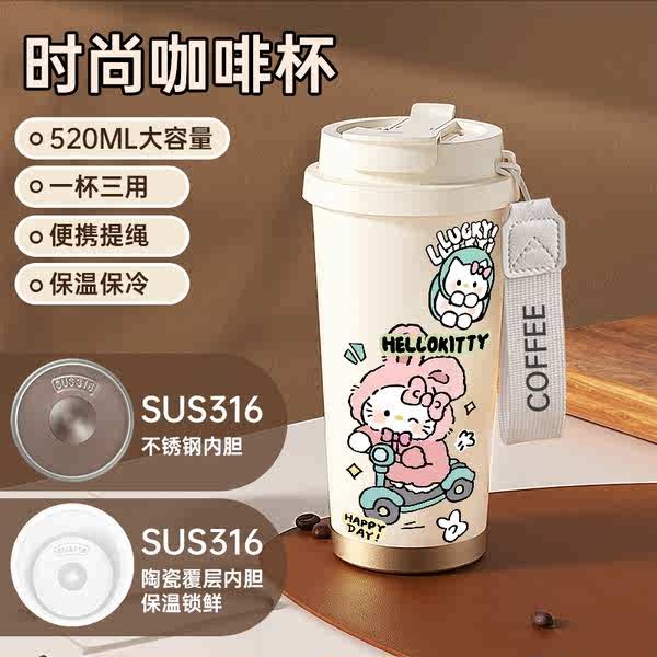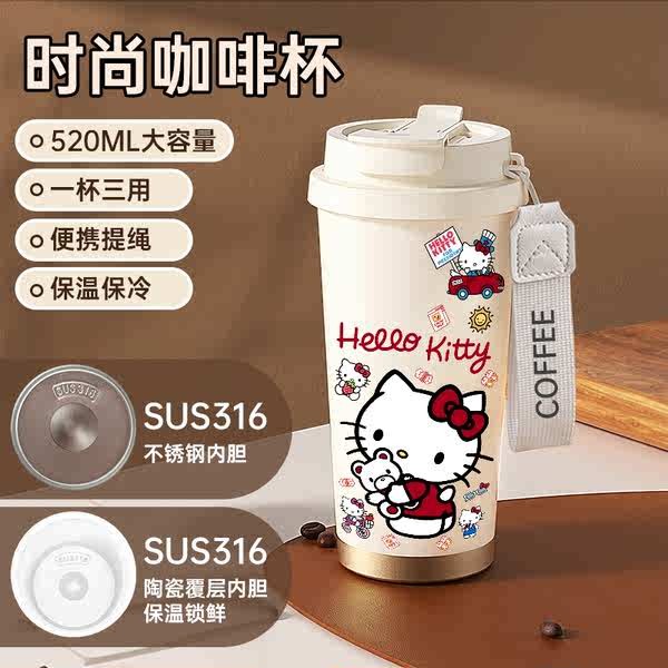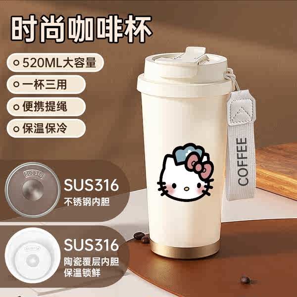ceramic mug hydrojug tumbler tumbler tahan sejuk budak Cute Hello Kitty Thermos Cup Female High-Value Portable 2025 New Style Coffee Cup 316 Large Capacity Straw Water Cup