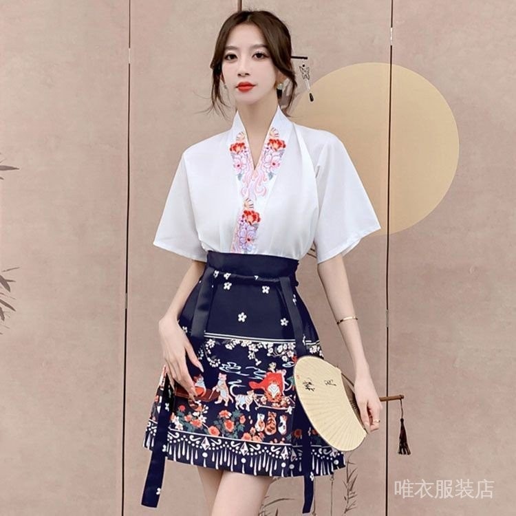 horse-face skirt 马面裙 国风重工刺绣短袖衬衣古风配马面裙的上衣飞机袖新中式