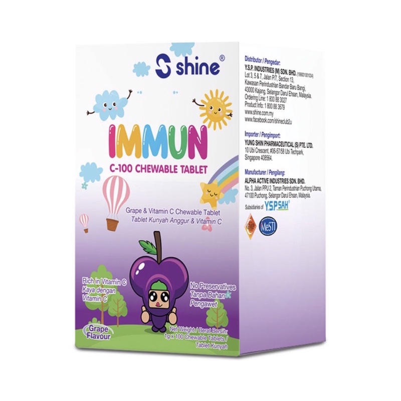 SHINE IMMUN C-100 CHEWABLE TABLETS- Grape&Orange Flavour