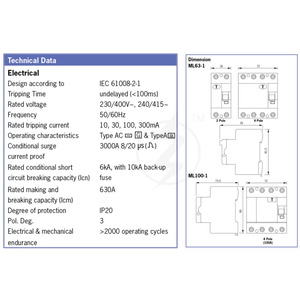 MAXGUARD 40A/ 63A /100A 4Pole 300mA/ 100mA RCCB (ELCB)
