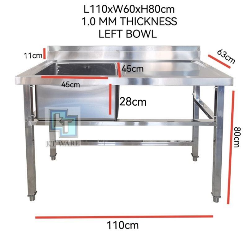 KT WARE Stainless Steel Single Bowl Sink With Drainboard / Mangkuk Sinki Kanan & Kiri commercial sink