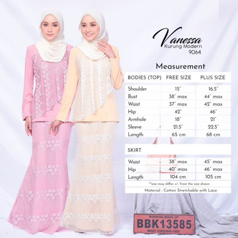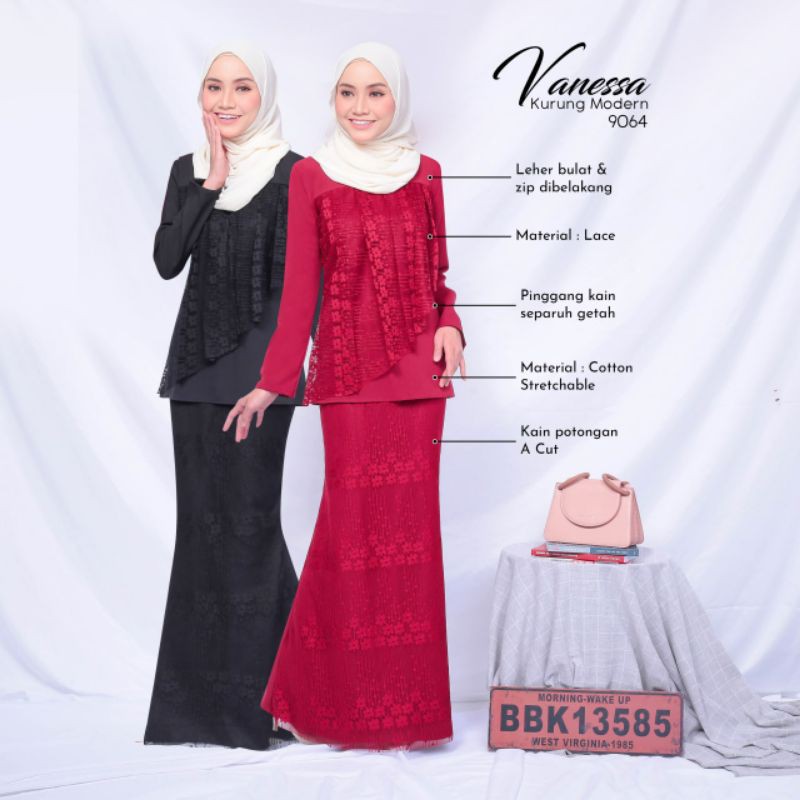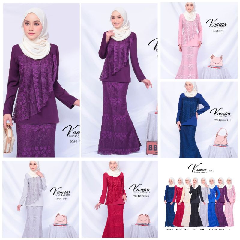 Kurung Vanessa Lace 8warna! Vanessa Kurung Modern Lace 9064# Baju Kurung Moden! Mini Kurung!Kurung Peplum!Baju Tunang