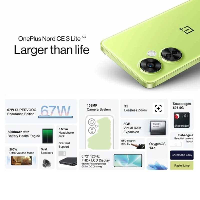 【GLOBAL SET】OnePlus Nord CE 3 Lite 5G / 6.7 inches / 5000 mAh