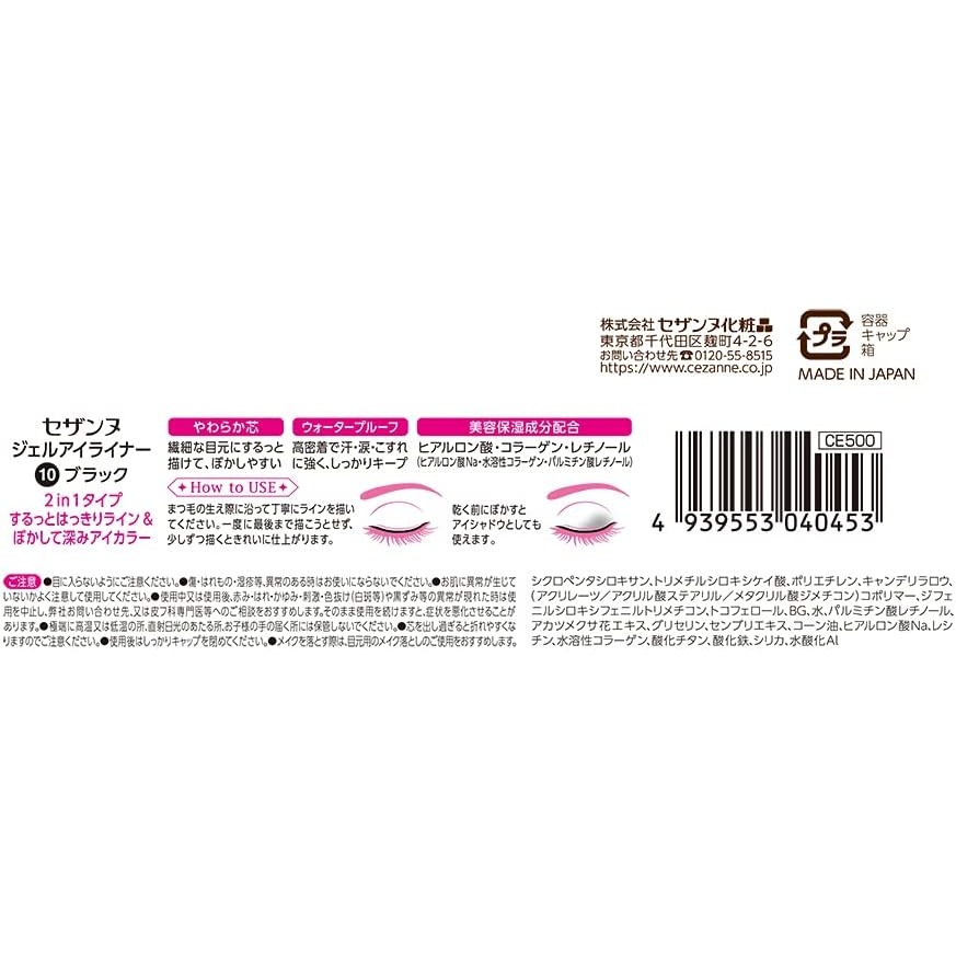 Cezanne Gel Eyeliner, 10 Black, 0.004 oz (0.1 g)Directly from Japan