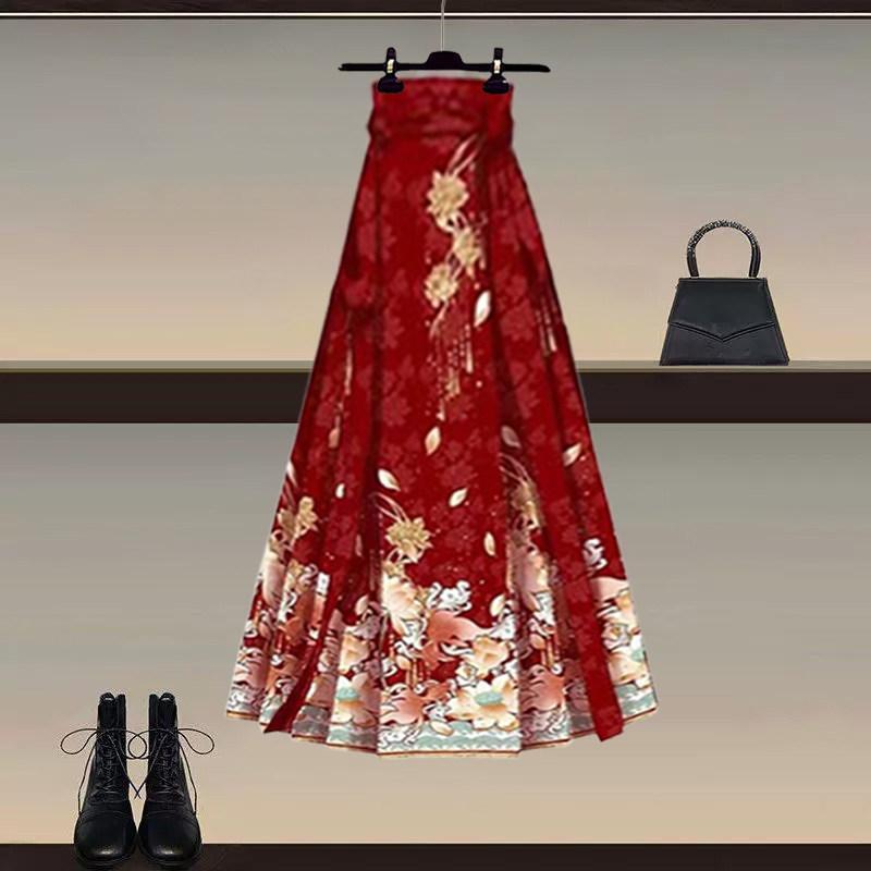 新年红色汉服半身裙女冬季高级感气质百搭改良马面裙子New Year Red Hanfu Skirt Women's Winter High-end Sense20260106