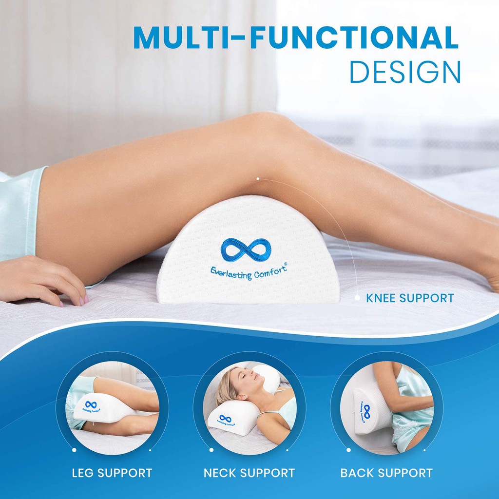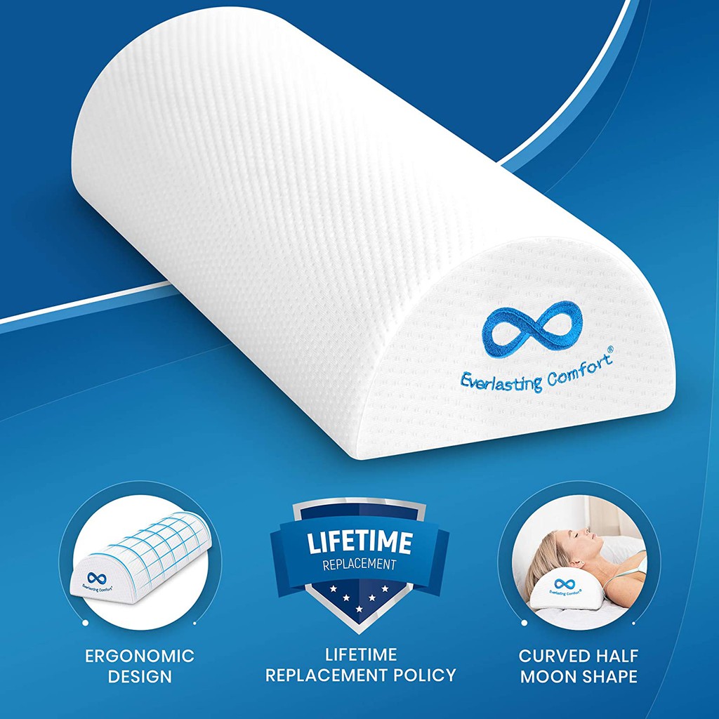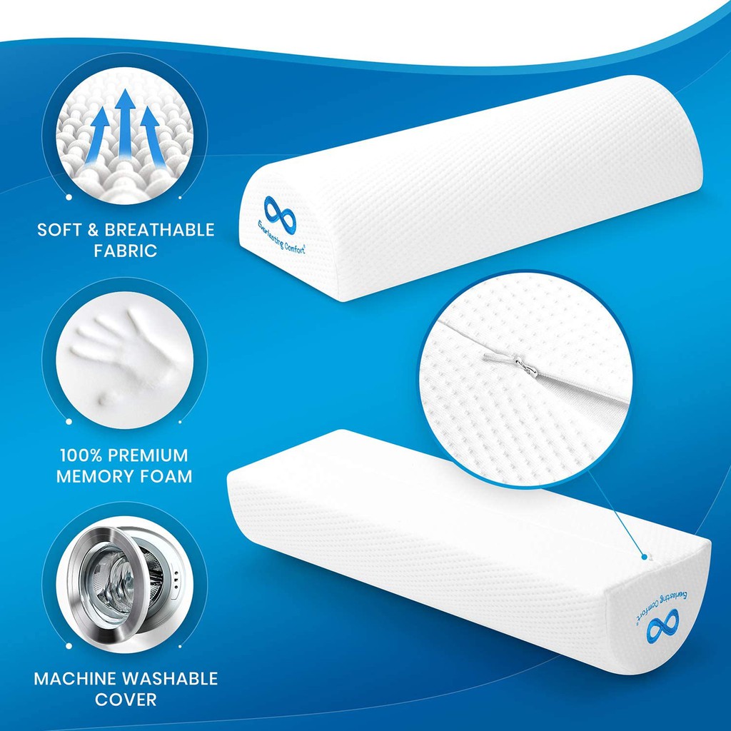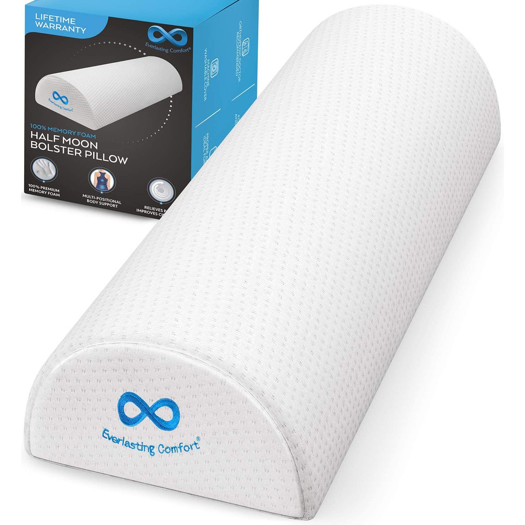 Everlasting Comfort Bolster Pillow for Legs - Soft, Breathable Memory Foam Half Moon Pillow, White